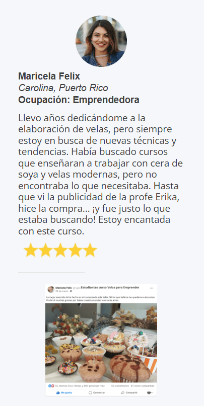mensuales desde casa, elaborando y vendiendo sus propias velas gracias a los conocimientos adquiridos en nuestro programa online.
