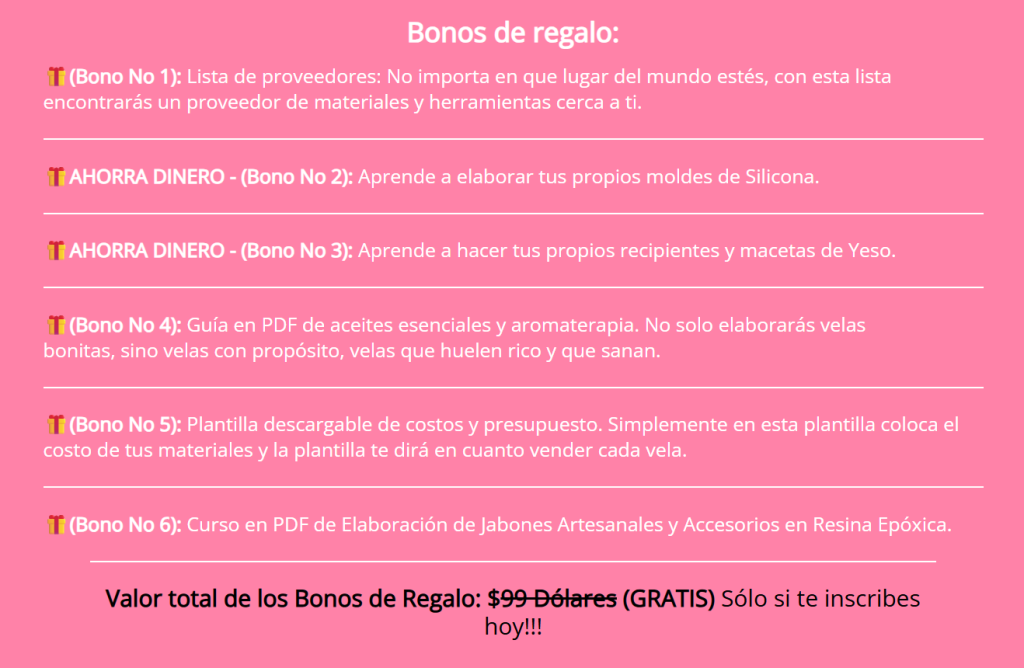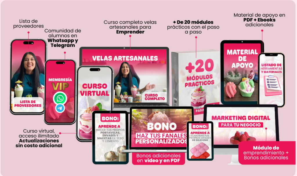 ¡Atención! No solo aprenderás a crear velas increíbles, también te enseñaremos cómo atraer clientes a través de redes sociales y convertir tu pasión en un verdadero negocio.